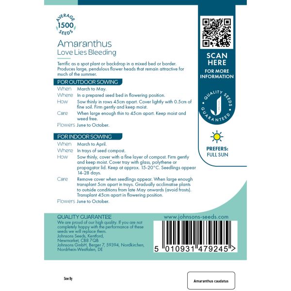 Order Amaranthus Love Lies Bleeding seeds from Johnsons today and add a touch of drama to your garden. Don’t forget to explore our gardening supplies for all your planting needs!