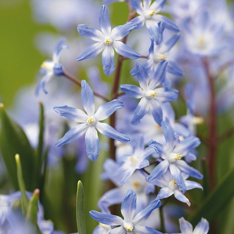 These star-shaped flowers shine from borders in a sparkling clear blue shade with a white centre. Appearing en-masse among upright and spreading strap-like foliage, they are very early to flower and easy to grow. Good for planting under trees and shrubs in a woodland setting, their habit makes these plants perfect for the rock garden or container. Plant at approximately 8cm deep in a well-drained soil in full sun.