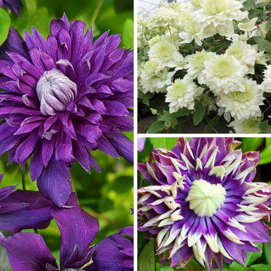 Regarded as the pinnacle among climbers, clematis plants stand out as an excellent option for brightening up walls or fences. Elevate the display with these double-flowered varieties, each boasting an extended blooming period from late spring well into autumn, promising an enduring floral spectacle.