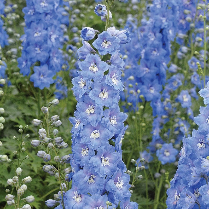 Tall, elegant and stately spires of flowers, delphiniums are a timeless cottage garden favourite. Full of colour and very effective used as a back-of-the-border subject, the Aurora series is one of the best we've seen, rivalling, and even surpassing more expensive cutting-raised varieties.