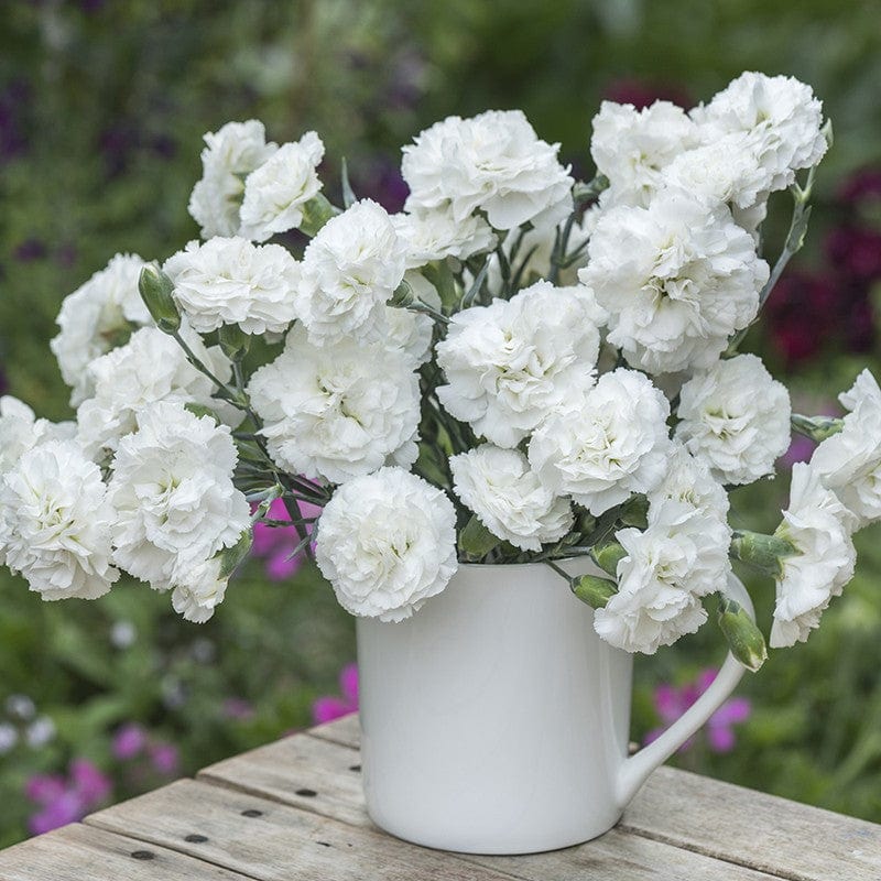 A fantastic variety with an abundance of gorgeous white, fully double blooms which emit the most wonderful clove-like perfume. Easy to grow and care for, they are perfect for the border or in large pots on the patio.
