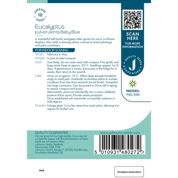 With its year-round beauty and ease of care, Eucalyptus pulverulenta Baby Blue is an excellent choice for both experienced gardeners and beginners. Choose Johnsons for quality seeds and grow a garden feature that’s sure to impress.