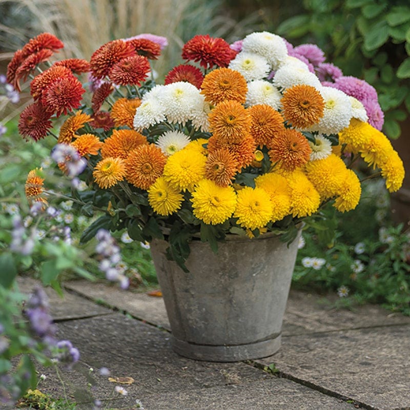 Popular with both gardeners and florists because they offer such great value, you can expect an abundance of flowers with these long-standing favourites. Spray chrysanthemums will produce several brightly-coloured flowers per stem, with each plant developing multiple stems.